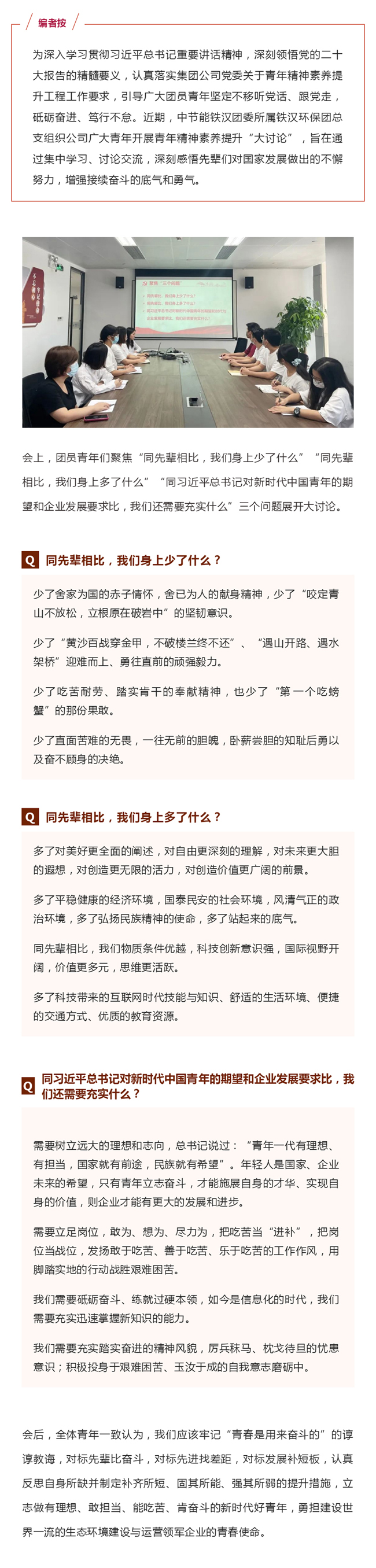聚焦二十大 | 中節(jié)能鐵漢開展青年精神素養(yǎng)提升工程“大討論”