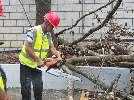 新坡鎮(zhèn)救災(zāi)現(xiàn)場,中節(jié)能鐵漢小分隊(duì)根據(jù)當(dāng)?shù)卣块T統(tǒng)一部署,在分配區(qū)域全速搶通阻斷路段,爭分奪秒對倒伏樹木進(jìn)行分解清理,并及時清理道路垃圾,開展衛(wèi)生整治工作。