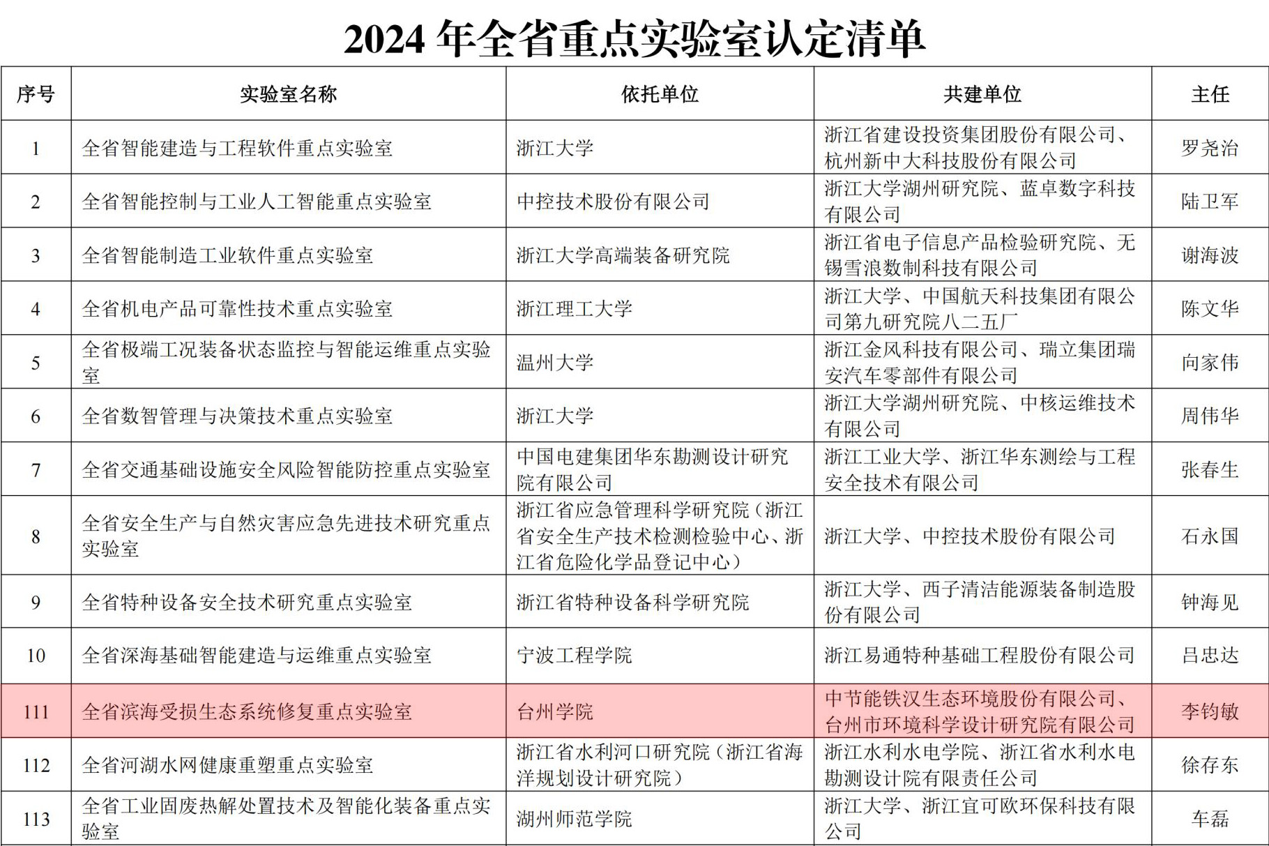 近日,中節(jié)能鐵漢生態(tài)環(huán)境股份有限公司與臺州學院、臺州市環(huán)境科學設計研究院有限公司共同申報的“全省濱海受損生態(tài)系統(tǒng)修復重點實驗室”通過浙江省科學技術廳認定,成為浙江省首個濱海生態(tài)修復實驗室。