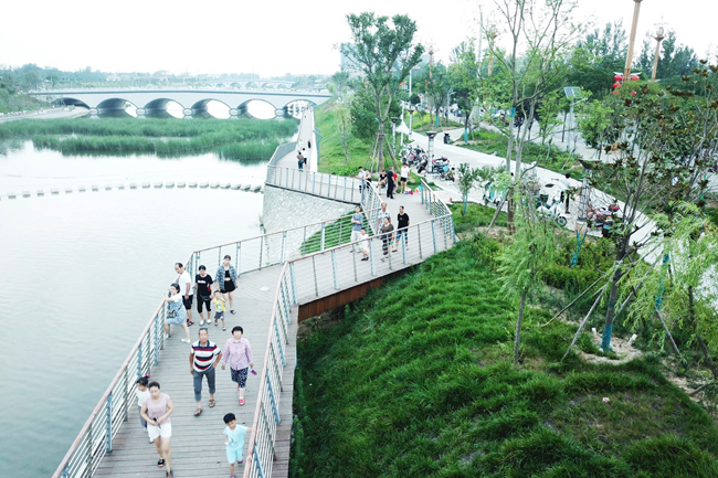 在項目實施過程中,中節(jié)能鐵漢創(chuàng)新性提出水安全保障、水循環(huán)構(gòu)建、水生態(tài)修復、水文化整合、水景觀提升、水經(jīng)濟發(fā)展“六位一體”的系統(tǒng)性綠色設計理念,充分發(fā)揮長澗河河流廊道的生態(tài)系統(tǒng)服務功能,旨在構(gòu)建綠地分布合理、生態(tài)環(huán)境優(yōu)良、可持續(xù)發(fā)展的“山水環(huán)繞、河流貫城、湖面點綴”“山、河、湖、城”相融合的國家生態(tài)園林城市。