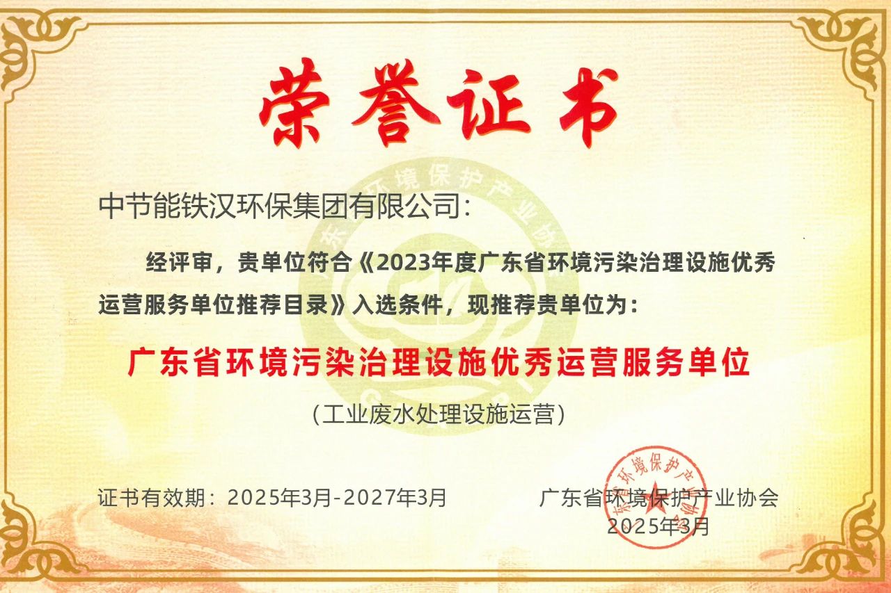為進(jìn)一步促進(jìn)廣東省環(huán)境污染治理設(shè)施運(yùn)營服務(wù)市場高質(zhì)量發(fā)展,樹立行業(yè)先進(jìn)典型和標(biāo)桿,支撐深入打好污染防治攻堅(jiān)戰(zhàn),廣東省環(huán)境保護(hù)產(chǎn)業(yè)協(xié)會組織開展了“2023年度廣東省環(huán)境污染治理設(shè)施優(yōu)秀運(yùn)營服務(wù)單位”的征集申報(bào)工作,經(jīng)過材料初審、專家核查、會議評審和名單公示等環(huán)節(jié),中節(jié)能鐵漢所屬中節(jié)能鐵漢環(huán)保集團(tuán)有限公司(下稱“鐵漢環(huán)保”)成功入選《2023年度廣東省環(huán)境污染治理設(shè)施優(yōu)秀運(yùn)營服務(wù)單位推薦目錄》,獲評“廣東省環(huán)境污染治理設(shè)施優(yōu)秀運(yùn)營服務(wù)單位(工業(yè)廢水處理設(shè)施運(yùn)營)”。
